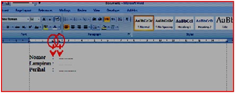 - Kalau tanda yang akan digunakan belum berada dtempatnya, artinya belum aktif, maka klik di tanda tersebut kemudian setelah tanda yang ada berubah jadi tanda tab yang akan digunakan klik saja di dalam ruler. Posisinya nanti bisa digeser-geser.