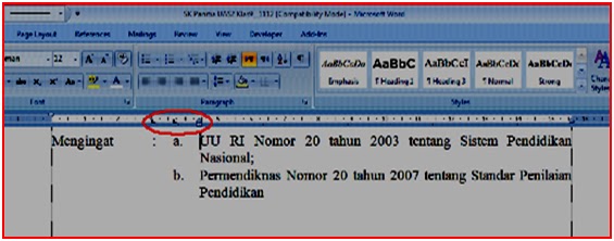 Tabulasi dan Indentas ini kelihatan kalau ruler ditampakkan, untuk menampakkan ruler : klik View lalu beri tanda cek pada Ruler.TABULASI
